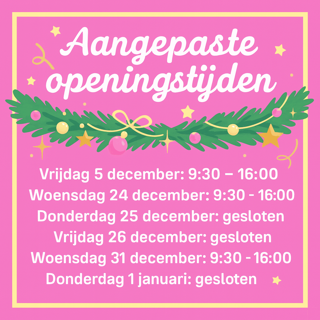 Met de feestdagen hebben wij weer aangepaste openingstijden. De andere dagen zijn wij gewoon volgens reguliere openingstijden geopend.
