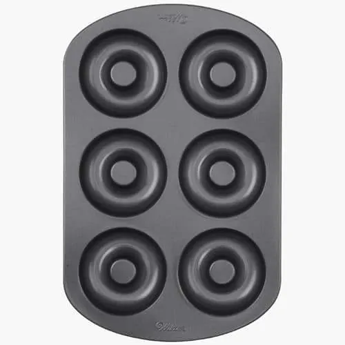 Zelf een keer donuts maken? Dan mag deze Wilton bakvorm niet ontbreken in je kast. Met deze bakvorm kun je zelf 6 standaardformaat donuts maken. Tevens is de pan voorzien van een non stick laag, zodat je donuts na het bakken gemakkelijk loslaten.