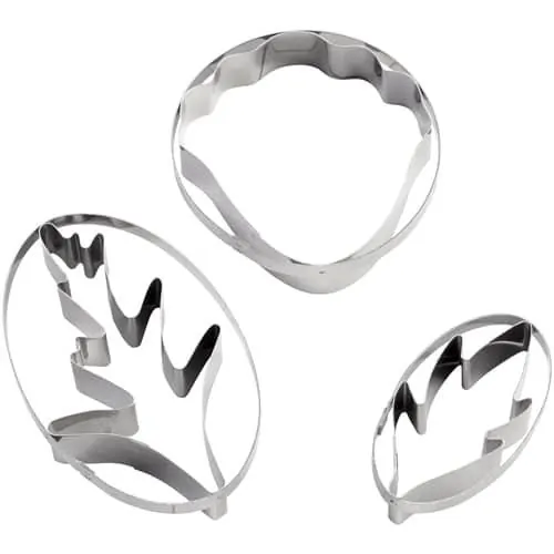 Met deze poppy cut-outs set van Wilton kun je prachtige klaprozen (papavers) en blaadjes maken! Deze complete roestvrijstalen uitsteker set heeft een metalen rand die zorgt voor een betere stabiliteit bij het uitsnijden van nauwkeurige bloemblaadjes. Klaprozen staan prachtige op taarten voor vele gelegenheden. De hoogte van de bloemblaadjes is circa . 6,4 cm en 5,3 cm. De blad uitsteker is circa 8,1 cm hoog. Inhoud: 2 bloemblad uitstekers en 1 blad uitstekers.