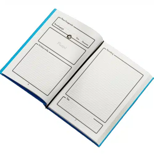 Het boek is 17 x 24 cm groot, heeft een hard-cover, een leeslintje en is 130 bladzijden dik.