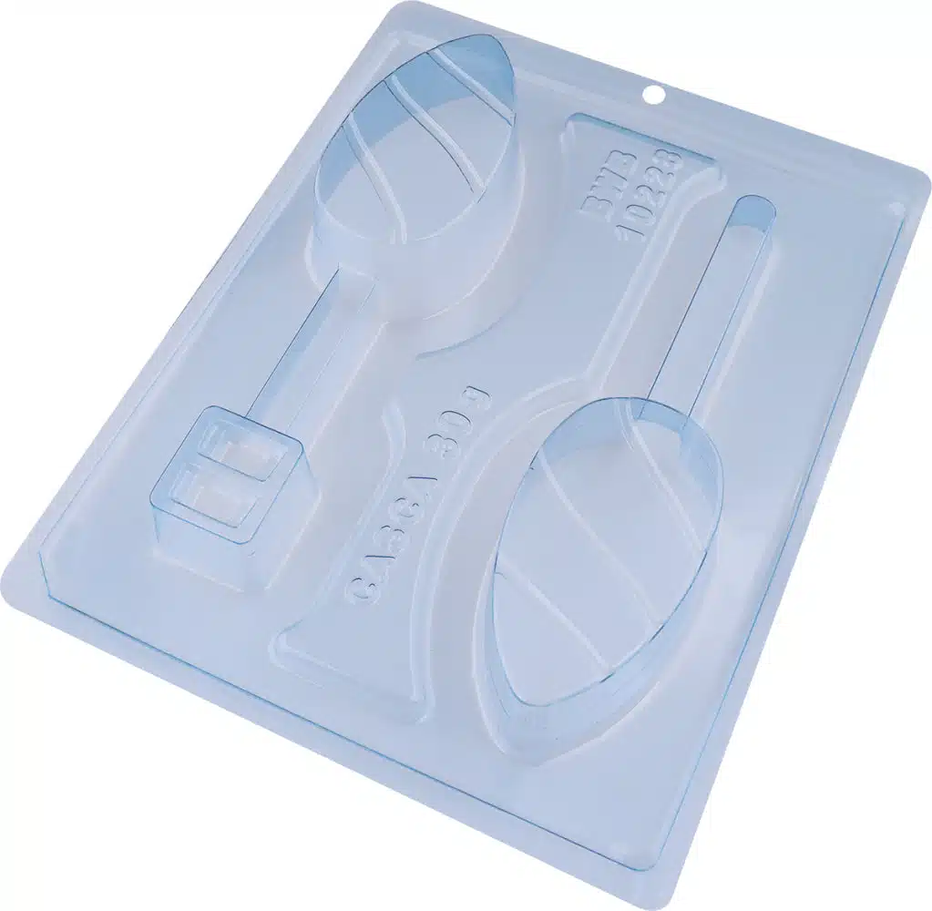 Doordat je met het flexibele gedeelte van de mal de chocolade naar de zijkanten van de mal drukt, krijg je dus een holle chocolade decoratie.