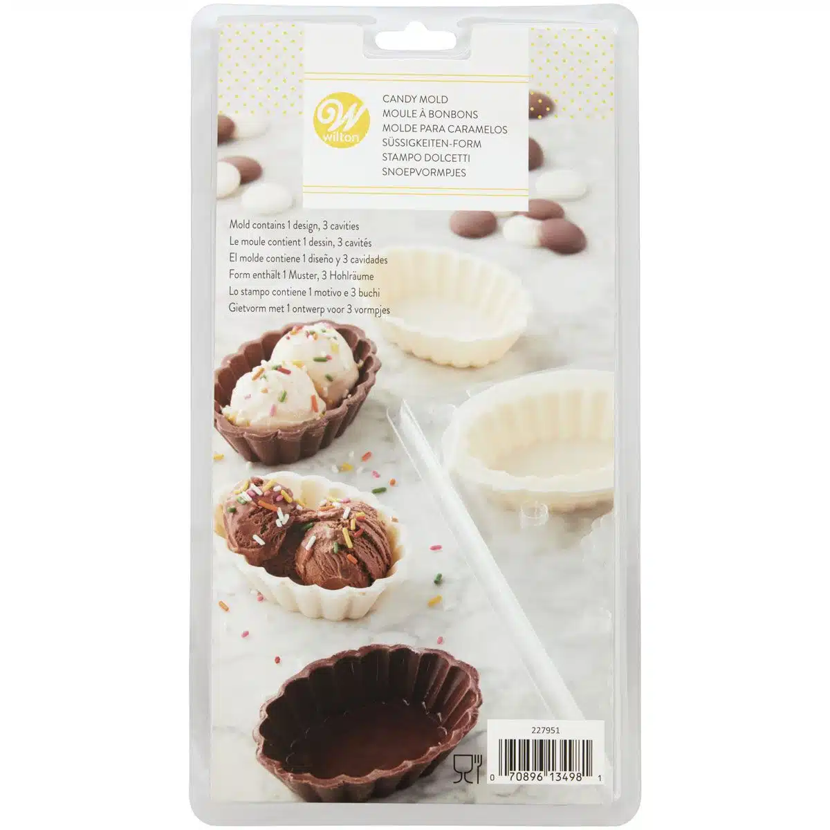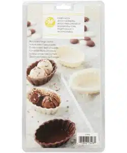 Een vorm bevat 3 vormpjes. Maak je eigen chocolade bakjes om heerlijke fruit of ijs desserts in te presenteren, maar ook snoepjes voor een kinderfeestje bijvoorbeeld. Daarna natuurlijk het bakje opeten..!