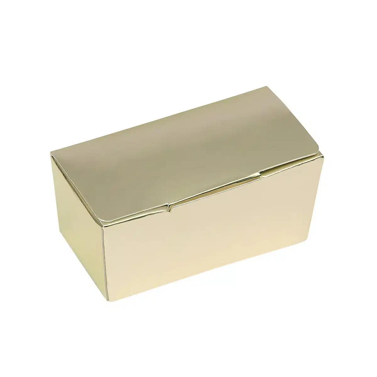 Geef twee bonbons in een chique doosje met deze Bonbondoosjes Goud Metallic. De doosjes hebben een prachtige gouden uitstraling, waar je zeker mee voor de dag kunt komen.