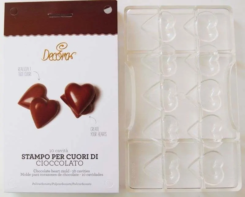 Deze professionele chocolade mallen zijn gemaakt van polycarbonaat, een materiaal dat er voor zorgt dat de bonbons een mooie glans en een perfecte vorm krijgen. Met deze chocolade mal met hartjes maak je de mooiste (gevulde) bonbons. Met deze mal kan je in een keer 10 hart bonbons maken met een afmeting van 32,5 mm x 35 mm x 10 mm.