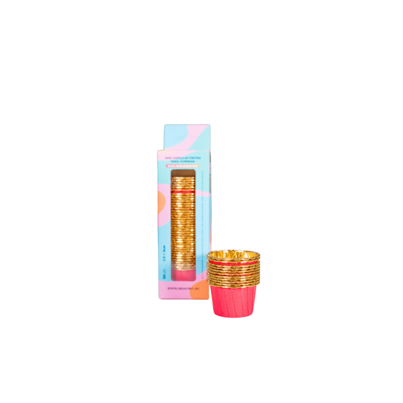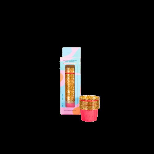 Met deze stevige MINI rode baking cups bak je zonder moeite prachtige muffins en cupcakes. Het hoogwaardige materiaal zorgt ervoor dat je baksels perfect in vorm blijven, zonder dat je een extra bakvorm nodig hebt. De glanzende gouden metallic rand geeft elk gebakje een luxe uitstraling en blijft mooi helder tijdens het bakken. Dankzij het flexibele materiaal zijn de bakvormpjes eenvoudig te gebruiken, terwijl je creaties toch strak en stevig blijven. Daarnaast zijn deze baking cups ideaal voor het presenteren van andere lekkernijen, zoals petitfours, snoepjes of cakepops. Zo maak je van iedere desserttafel een feestelijk geheel!