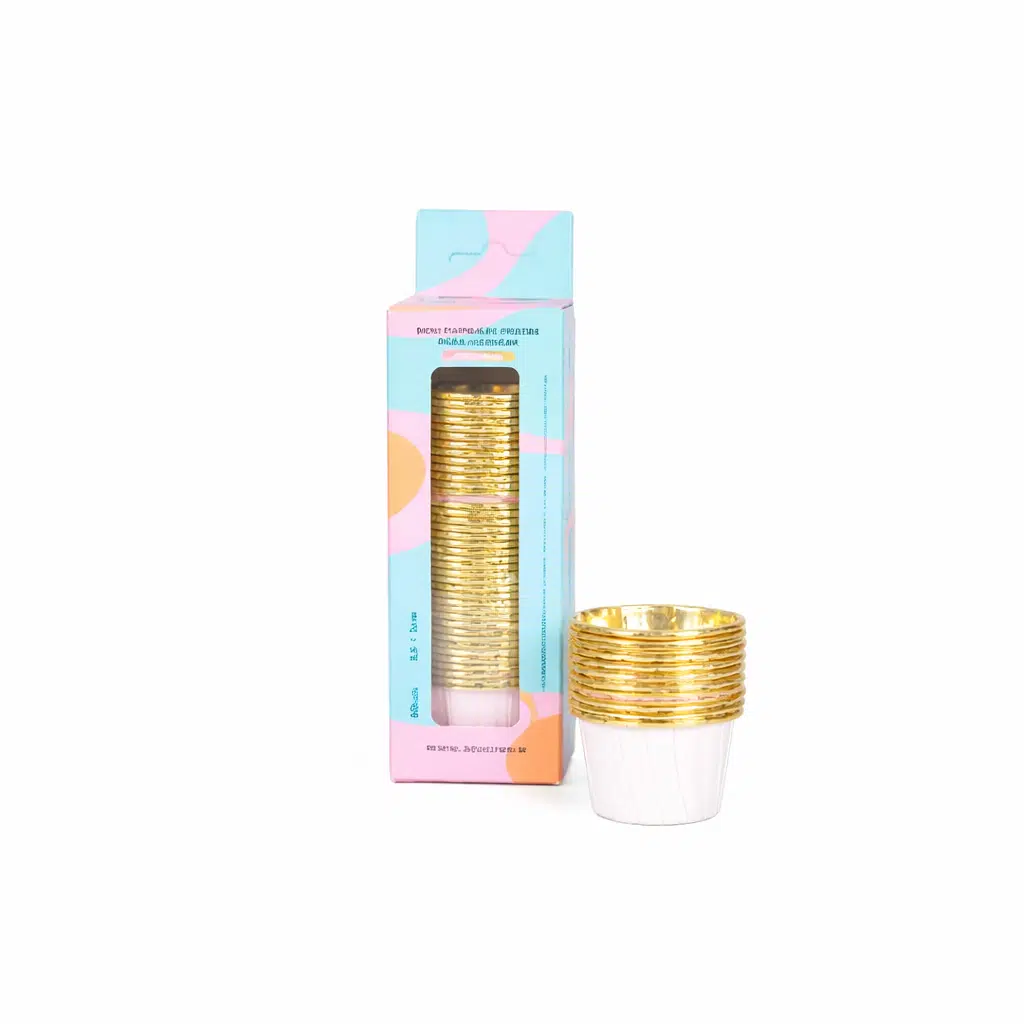 Met deze stevige MINI witte baking cups bak je zonder moeite prachtige muffins en cupcakes. Het hoogwaardige materiaal zorgt ervoor dat je baksels perfect in vorm blijven, zonder dat je een extra bakvorm nodig hebt. De glanzende gouden metallic rand geeft elk gebakje een luxe uitstraling en blijft mooi helder tijdens het bakken. Dankzij het flexibele materiaal zijn de bakvormpjes eenvoudig te gebruiken, terwijl je creaties toch strak en stevig blijven. Daarnaast zijn deze baking cups ideaal voor het presenteren van andere lekkernijen, zoals petitfours, snoepjes of cakepops. Zo maak je van iedere desserttafel een feestelijk geheel!