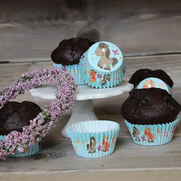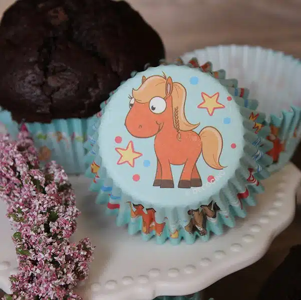 Schattige paarden cupcake bakjes met paarden print voor normaal formaat cupcakes. Verkrijg het beste resultaat door te bakken in een cupcake bakvorm.