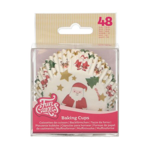 Bak leuke cupcakes voor Kerstmis in deze baking cups van FunCakes! De baking cups hebben een vrolijke Kerstpatroon van sterren, dennenbomen, Rudolph en de Kerstman. De baking cups zijn gemaakt van hoge kwaliteit vetvrij papier.