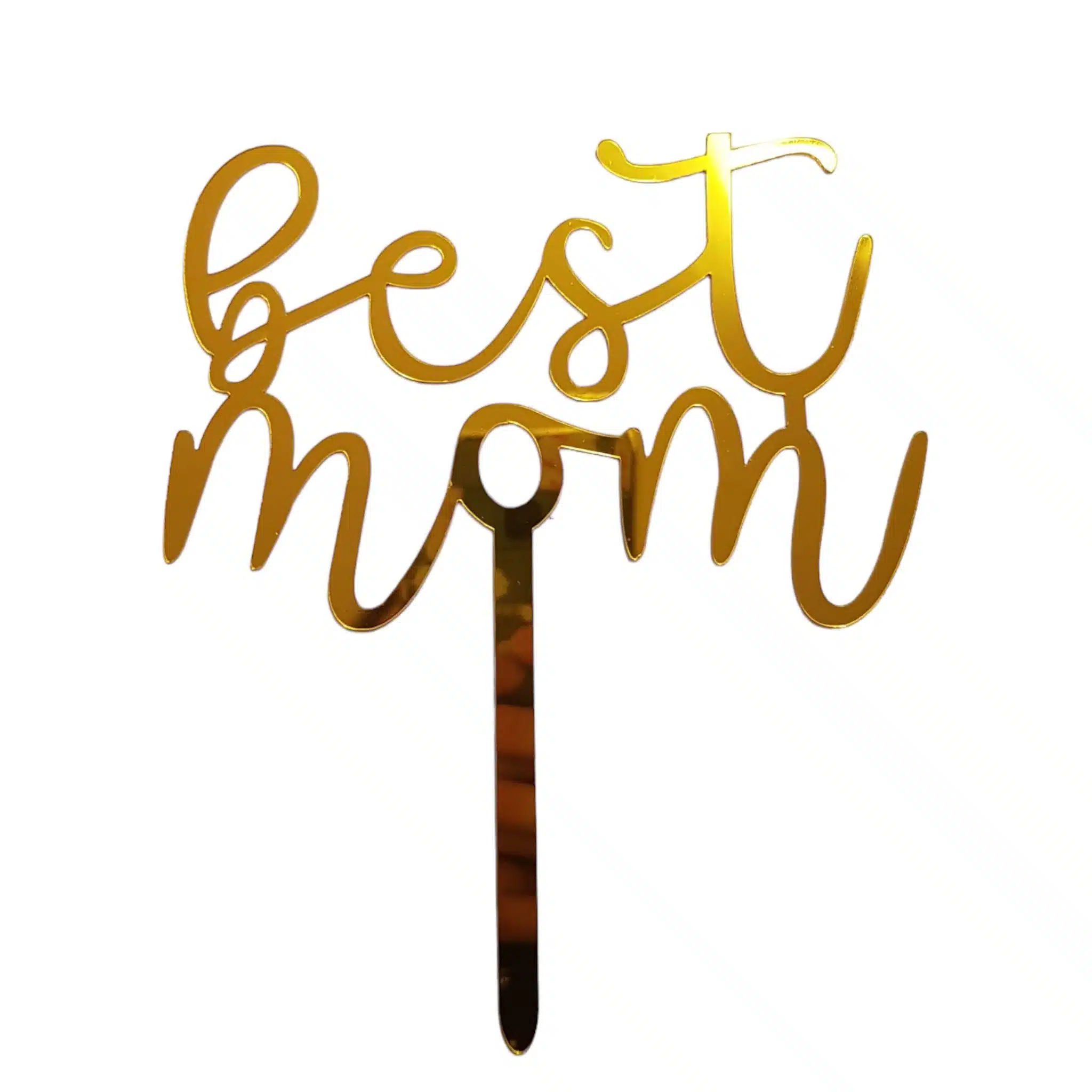 Voor de beste mamma deze mooie Best Mom caketopper in het goud.