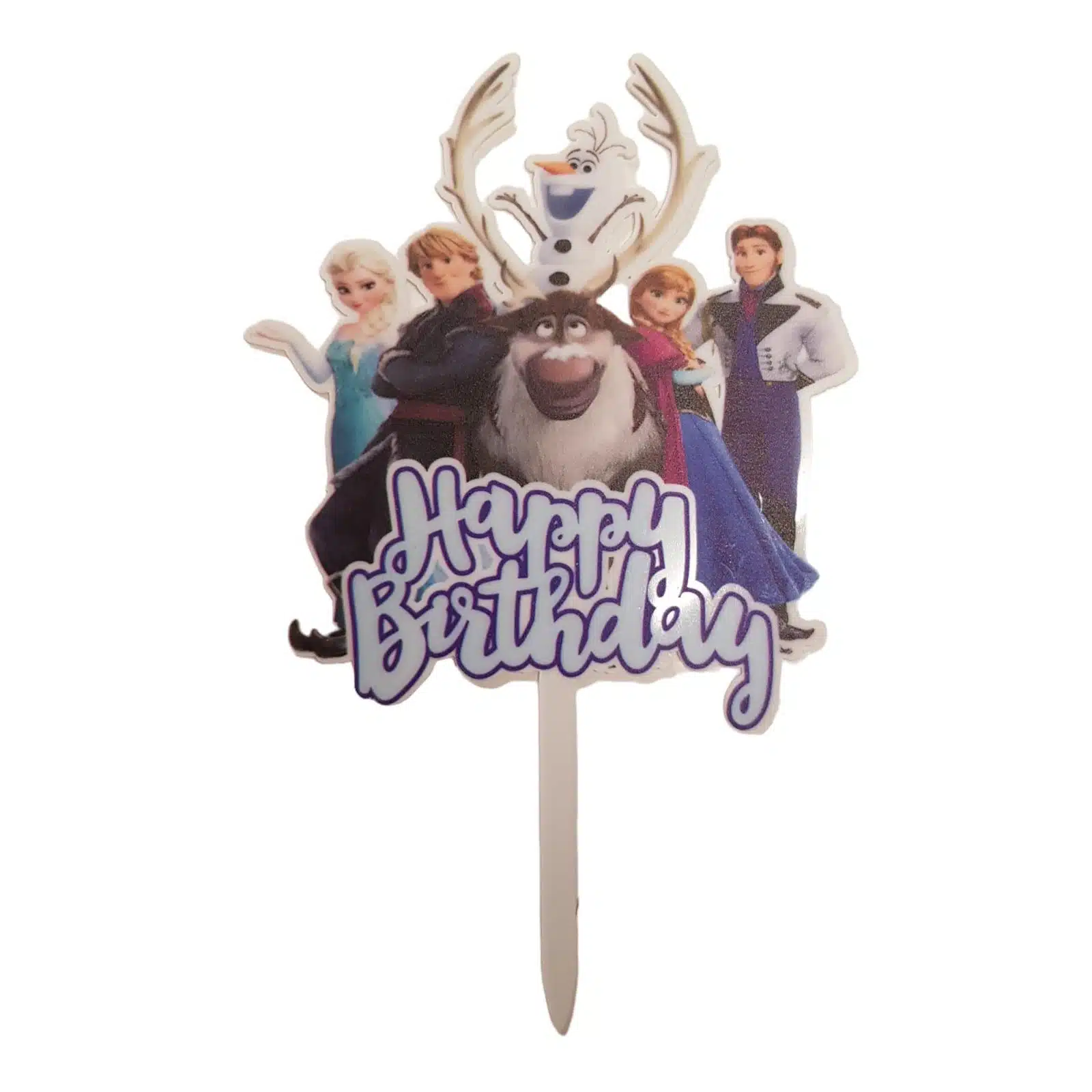 Voor de kleine Frozen fans is deze Frozen caketopper met Happy Birthday tekst perfect voor op een mooie Frozen taart.