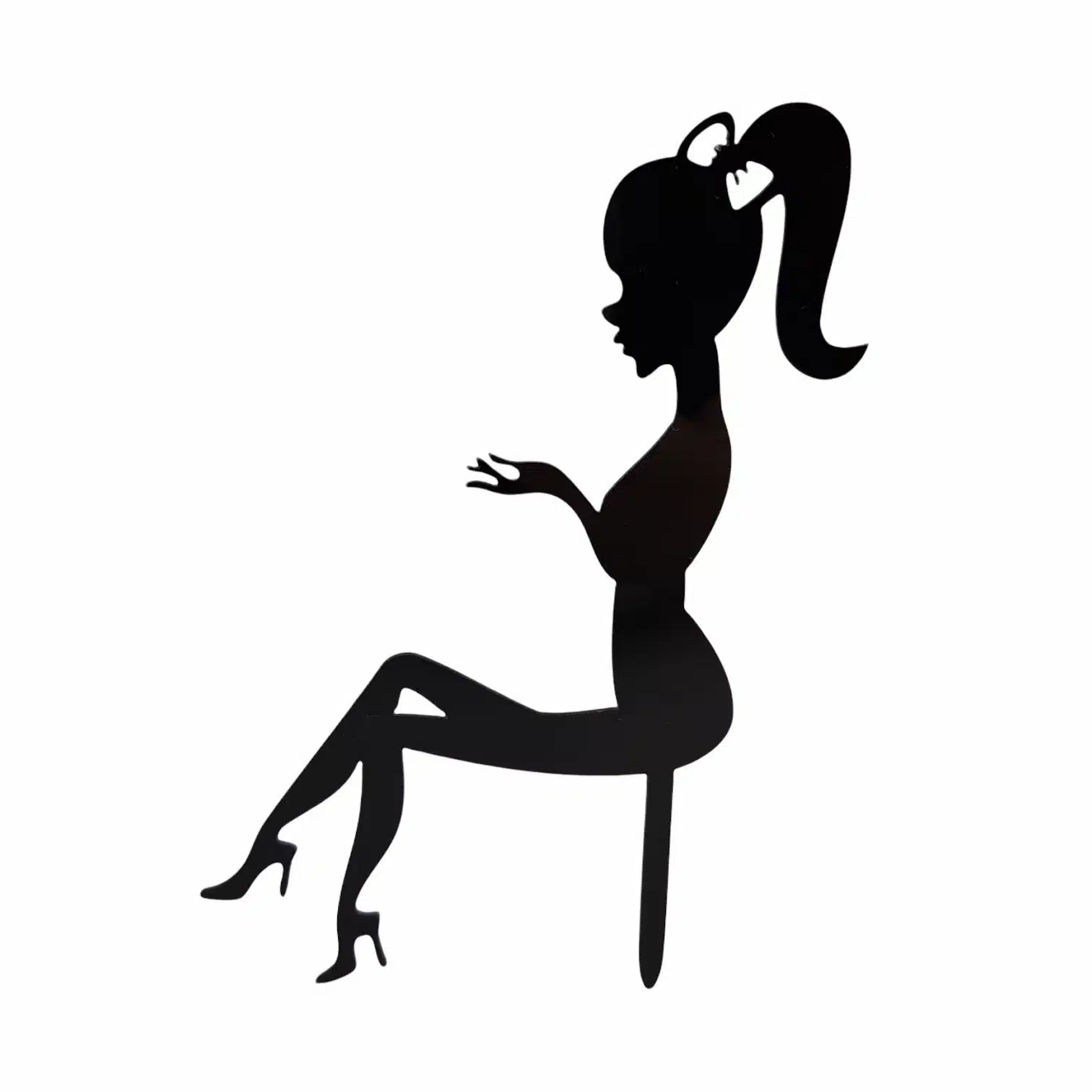 Leuke caketopper voor op een Sweet Sixteen verjaardagstaart van een jonge dame met hoge hakken. Van zwart acryl.