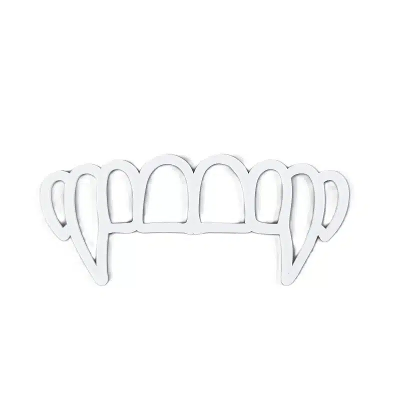 Grappige taarttopper van vampierentanden. Maak hem extra spannende met wat rode decomelts of rood bloed gel van PME!