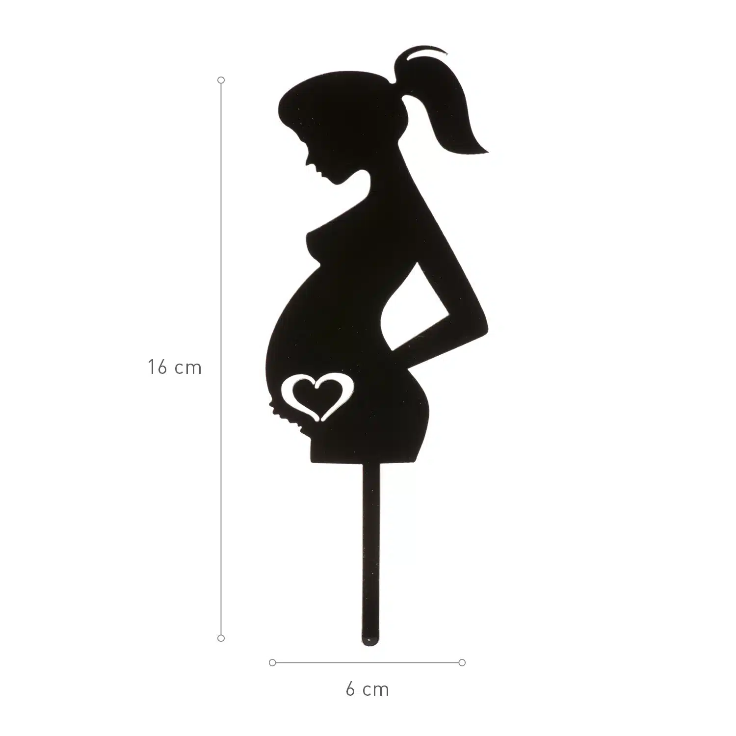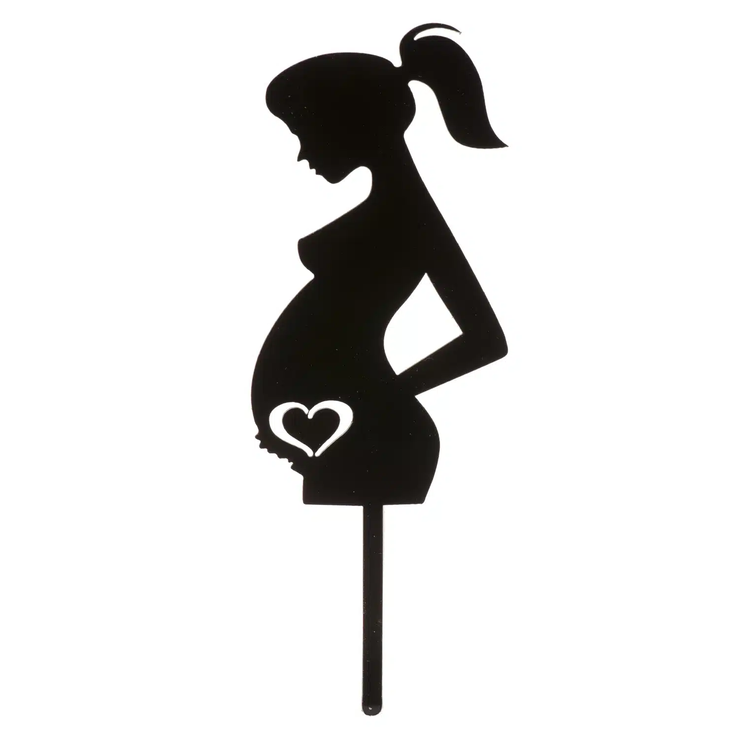 Mooie caketopper van zwart acryl in de vorm van een vrouw in verwachting.