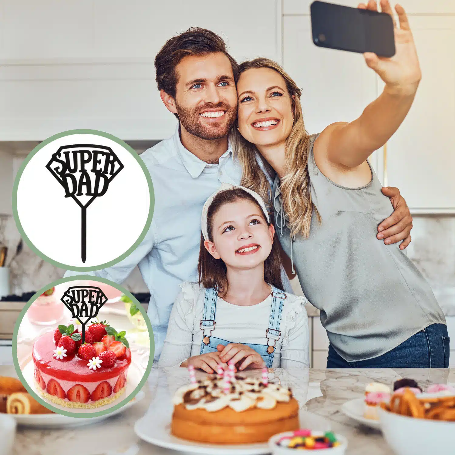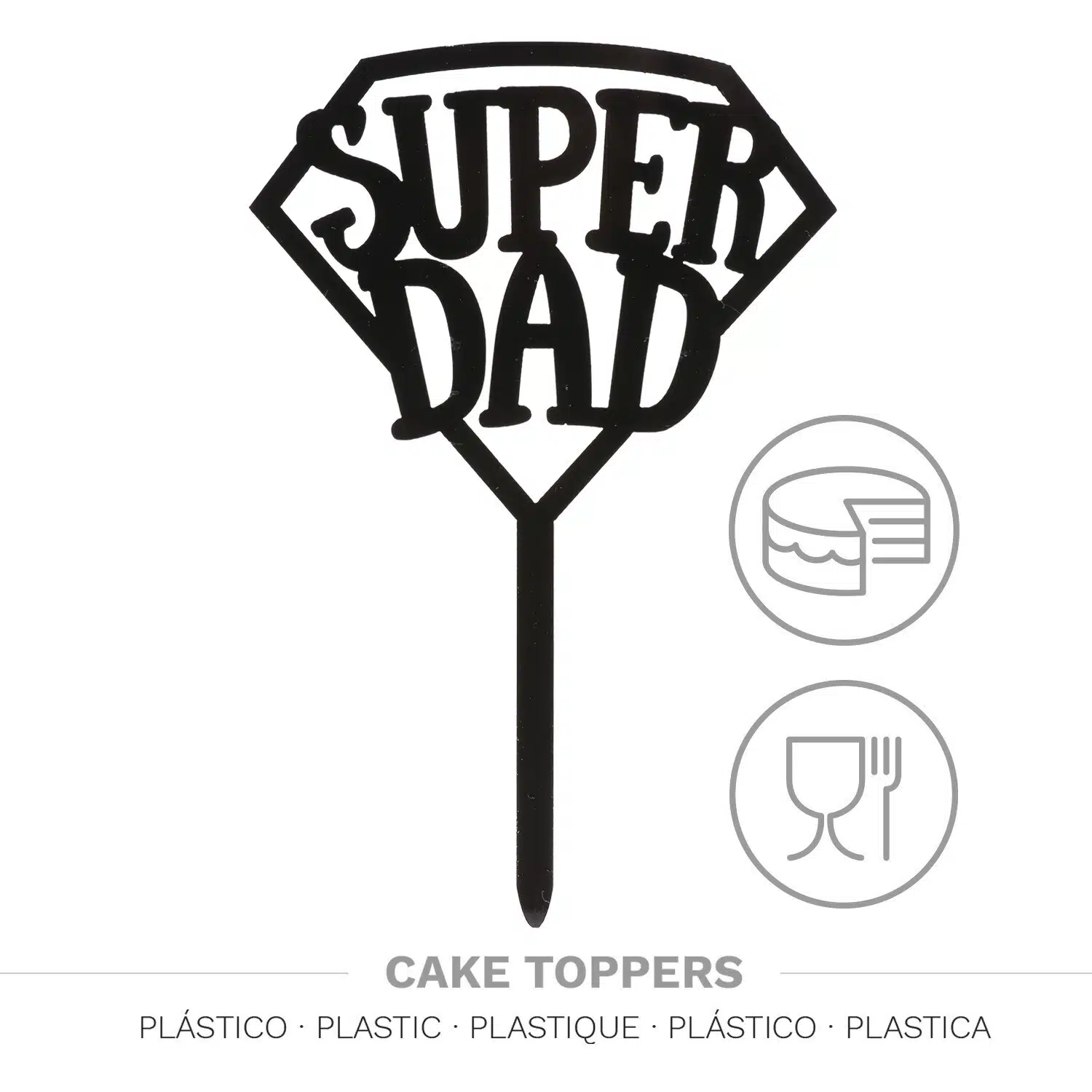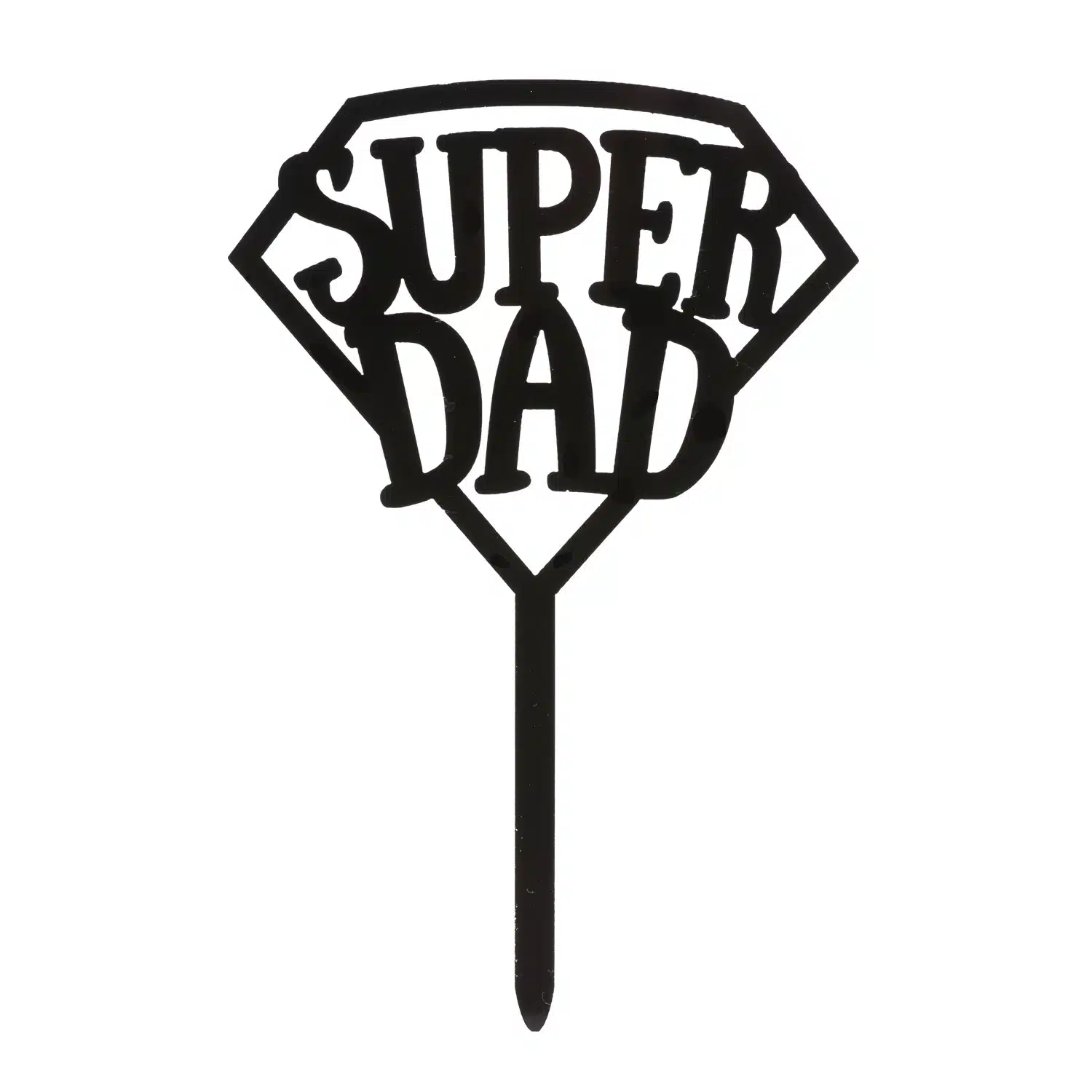 Leuke caketopper voor Vaderdah van zwart acryl met de tekst Super Dad.
