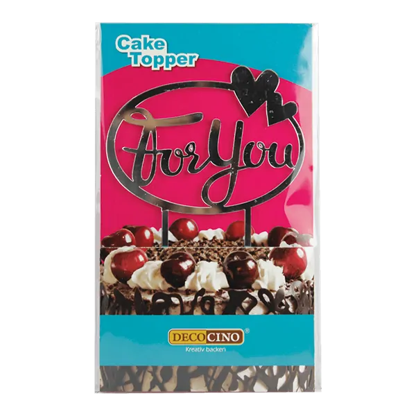 Iemand speciaals zomaar verwennen met een lekkere taart? Dan maakt deze taarttopper van zilver acryl het helemaal af. Met de tekst ‘For You’. Afmetingen: 9,5 x 8 cm. (zonder prikkers)