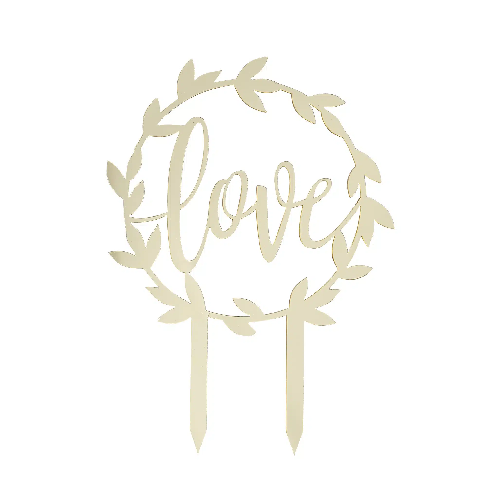Een klassieke en mooie gouden bruidstaarttopper die elke bruidstaart perfect zal afmaken.
