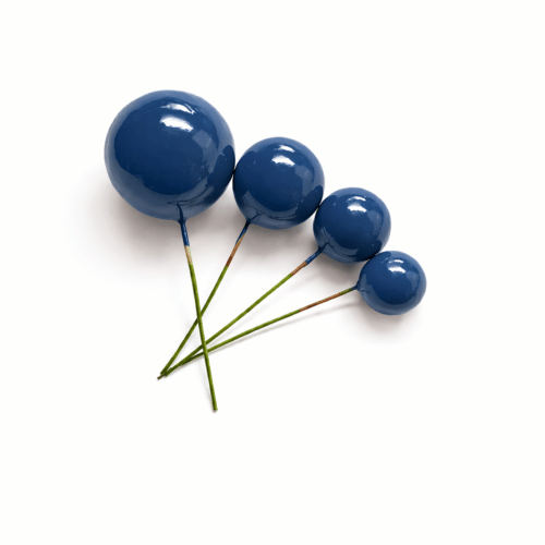 De bubbles zitten op ijzerdraad. Deze kan je wel rechtstreeks in een dummy taart steken, maar niet in een echte taart. Om de bubbles in een echte taart te steken, gebruik je een flowerpick, een rietje of je bindt de ijzerdraad goed in verschoudfolie. Het ijzerdraad mag niet in contact komen met de taart. De bubbles zelf mogen wel in contact komen met de taart.