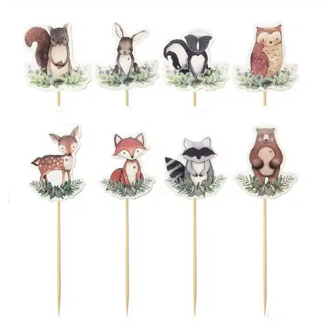 Super schattige cupcakes prikkers van bosdiertjes! Deze maken jouw cupcakes voor de kleine jarige helemaal af.