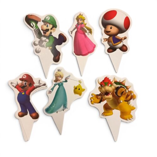 Vrolijke set van 24 cupcake prikkers in Mario Thema met mooie afbeeldingen van Mario karakters.
