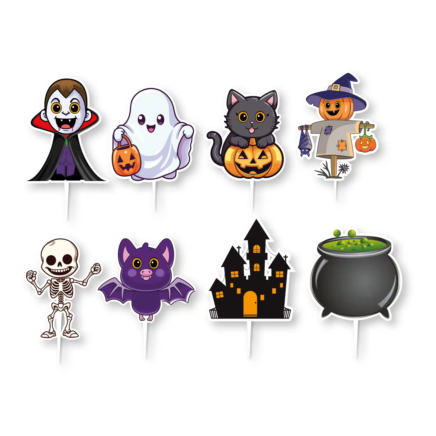 Super leuke cupcake prikkers voor jouw Halloween cupcakes! Met 8 verschillende afbeeldingen.