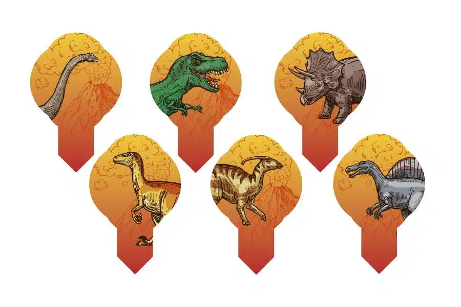 Leuke eetbare cupcake prikkers van ouwel met afbeeldingen van dino’s voor het maken van stoere Dino cupcakes!