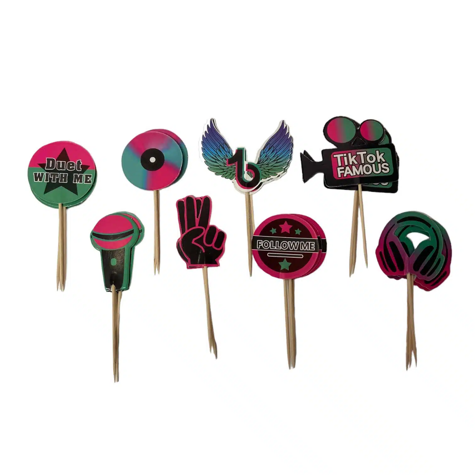 Voor iedere TikTok fan leuke cupcake prikkers met afbeeldingen in TikTok thema.