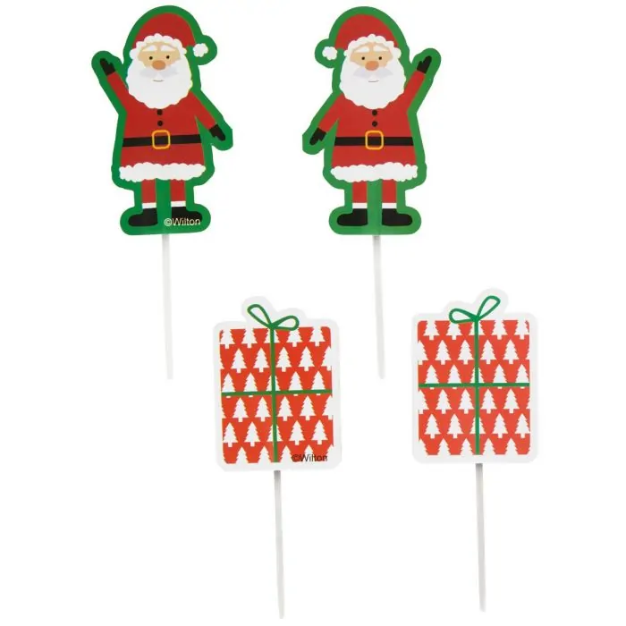 Maak je cupcakes, traktaties en desserts voor Kerstmis helemaal af met deze leuke treat picks! Deze set van Wilton picks bevat de Kerstman en cadeaus.