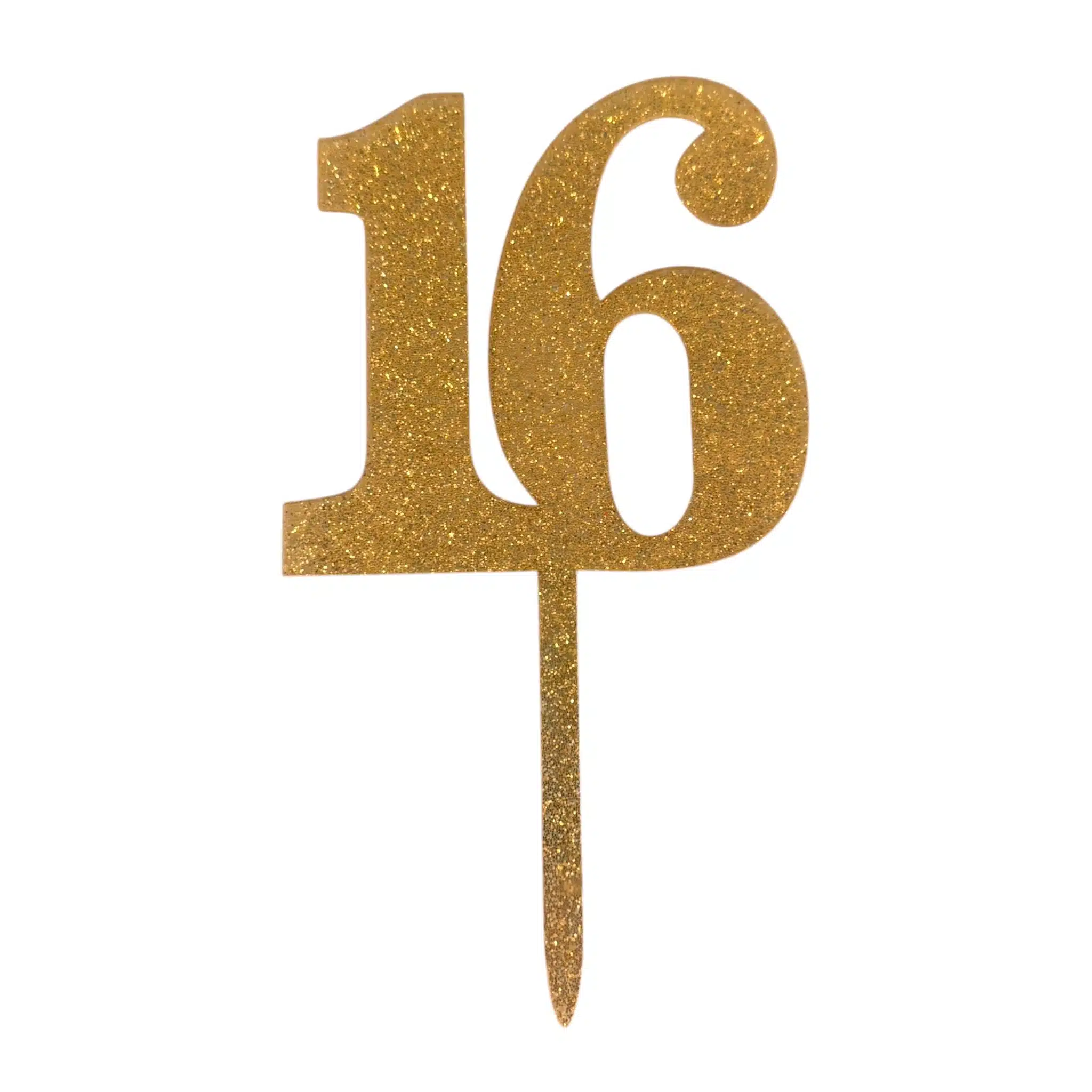 Leuke taarttopper voor op de Sweet 16 taart in het goud glitter!