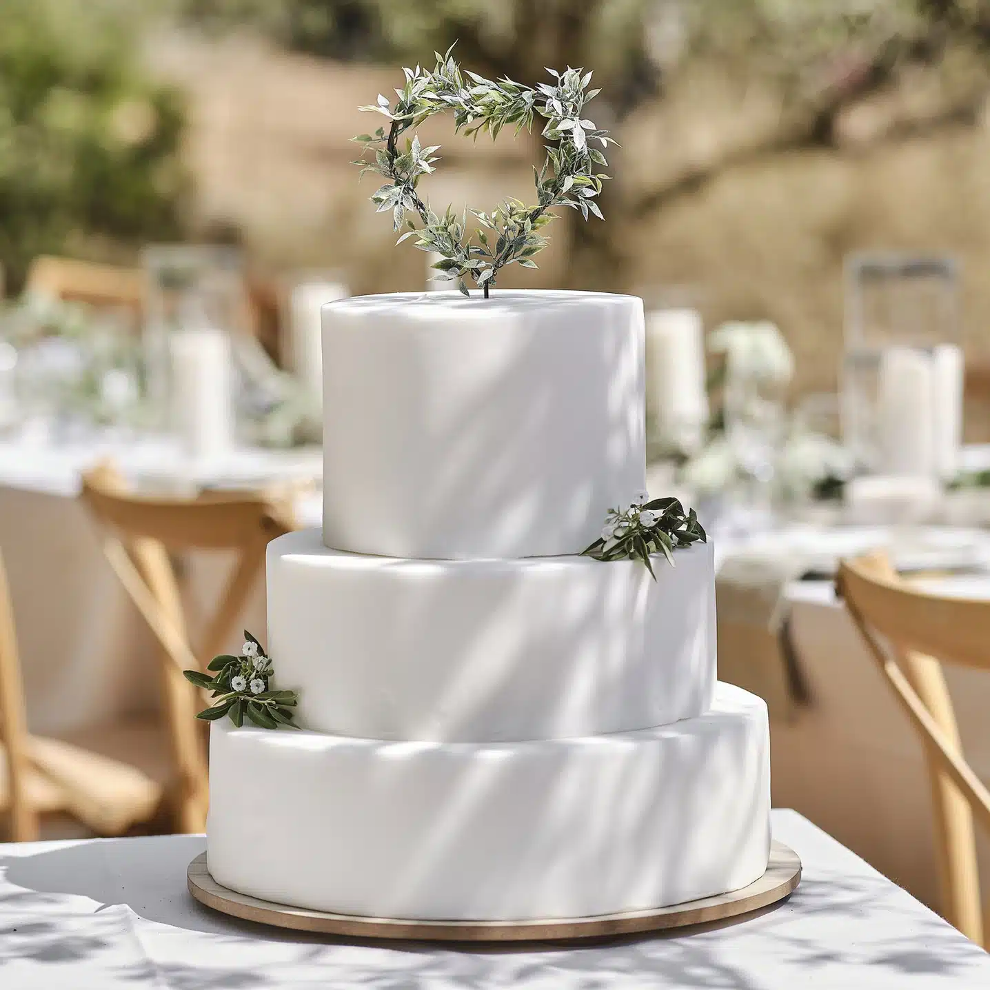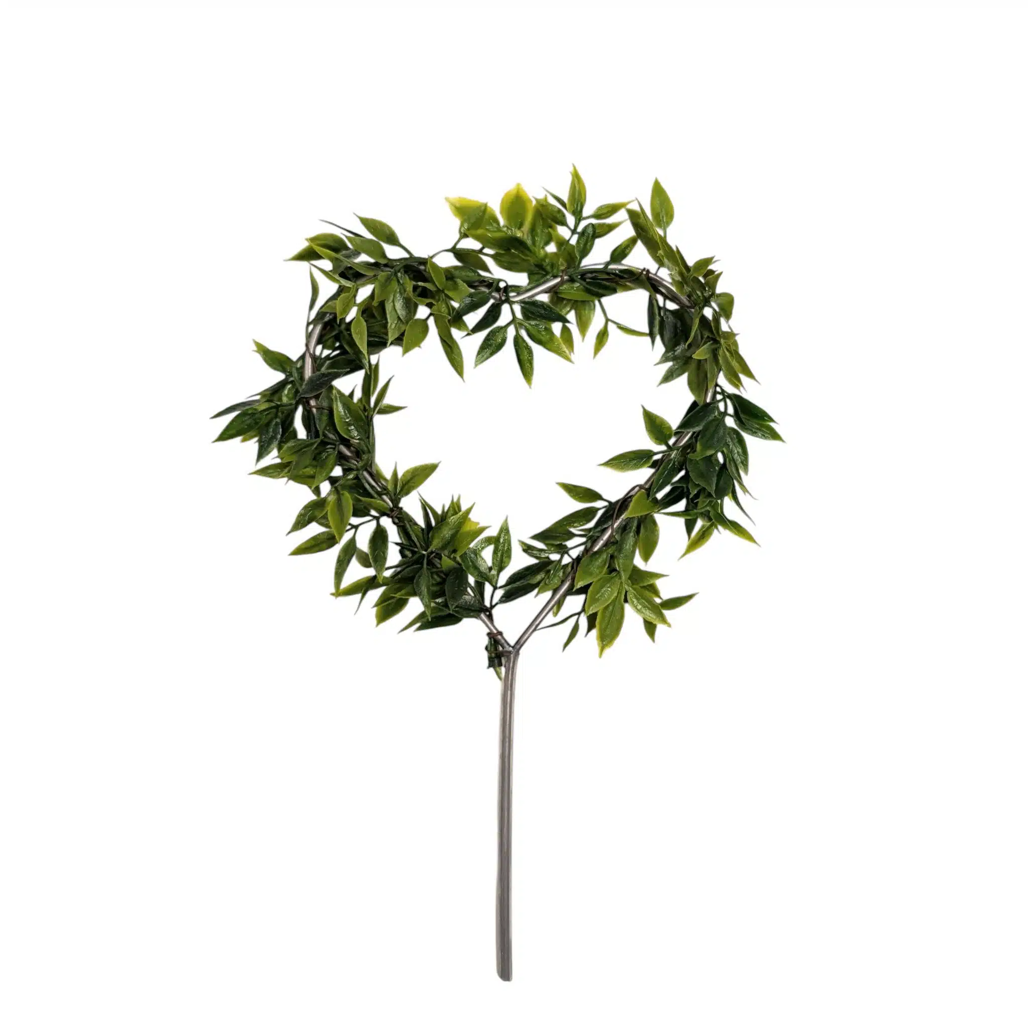 Maak jouw bruidstaart af met deze mooie hartvormige taarttopper omwikkeld met bladeren in een mooie kleur groen. Mooi voor op een naked cake!