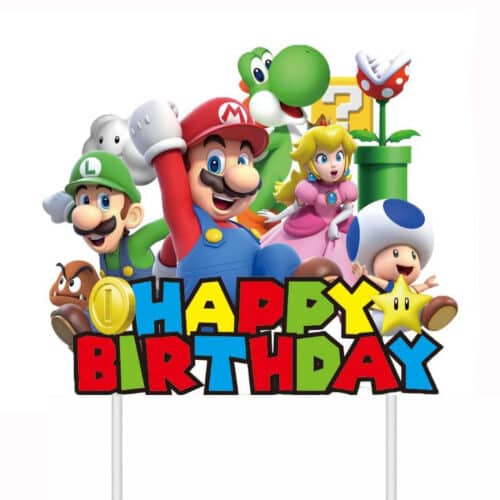 Deze kleurrijke Mario taarttopper is de kers op iedere Mario taart.