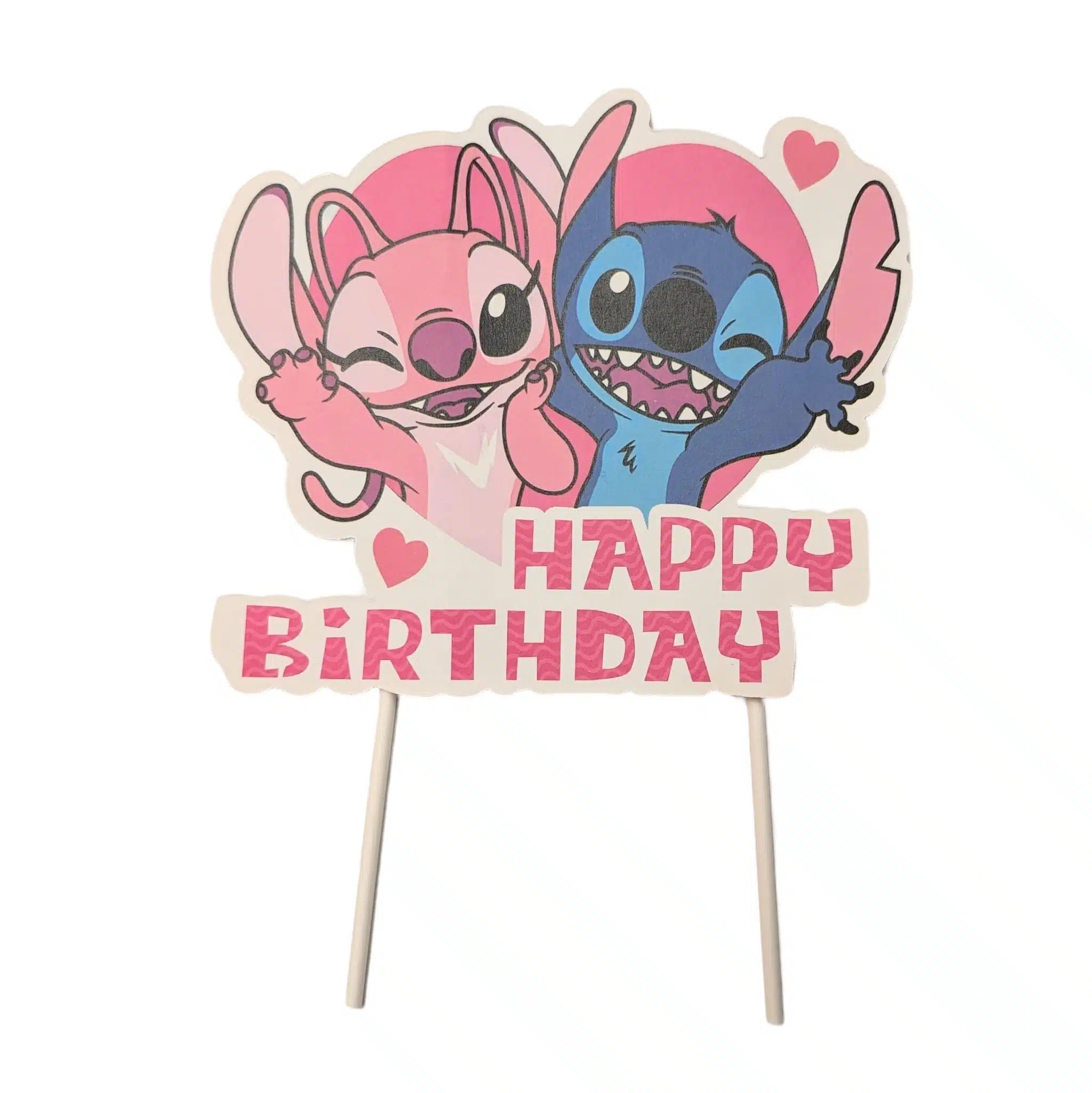 Schattige Stitch taarttopper met Angel en Stitch afbeeldingen uit de film Lilo & Stitch.