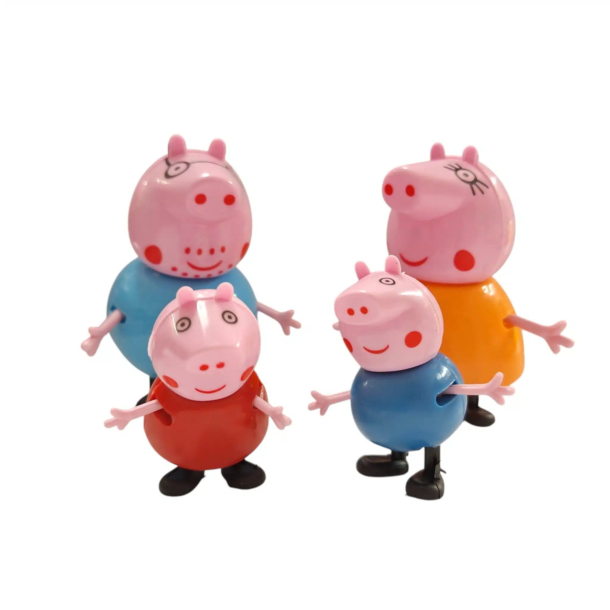 Leuke set van plastic taarttoppers van Peppa Big en haar familie; mamma Big, pappa Big en broertje George. De poppetjes hebben bewegende armpjes, beentjes en hoofdjes. Zij kunnen zowel staan als zitten op een taart. Afmetingen: pappa en mamma Big: 9 cm en Peppa en George: 5,5 cm.