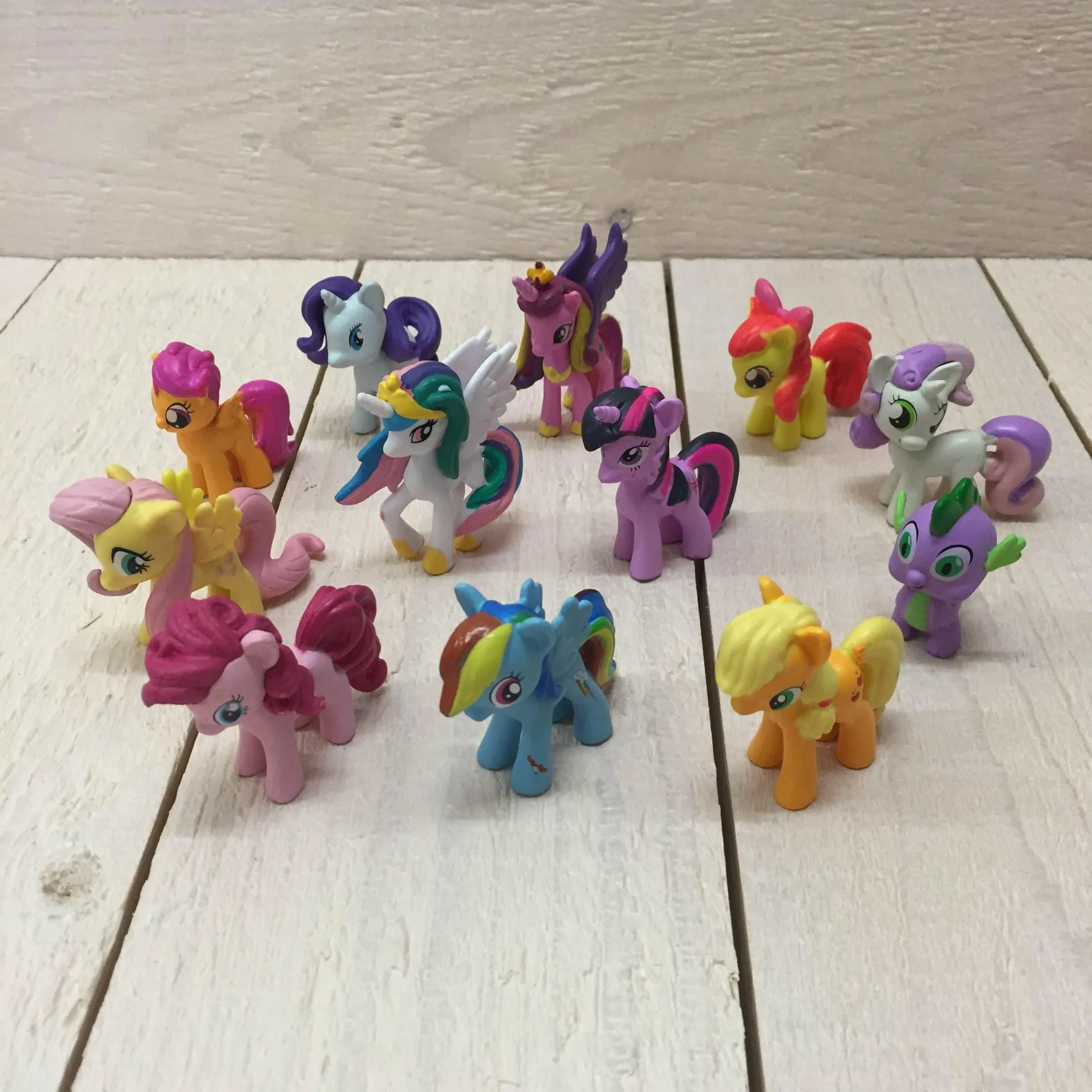 Set van 12 verschillende My Little Pony paardjes voor op jouw taart of cupcakes. Set van 12 paardjes van ca 5-6 cm groot.