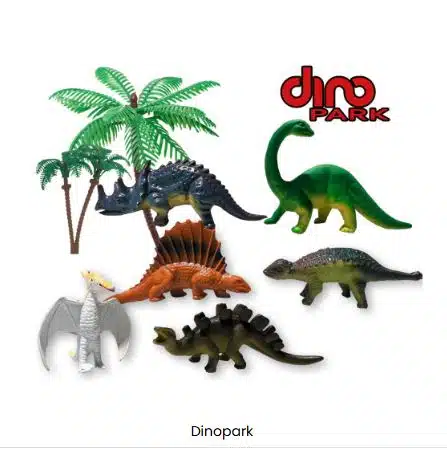Deze set bestaat uit 6 verschillende dino poppetjes en 2 boompjes.