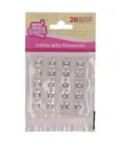 Diamonds are a girl’s best friend! Met de eetbare Jelly Diamonds van FunCakes til je je taarten naar een heel nieuw level. Want wie houdt er niet van een beetje glitter en glamour op z’n tijd? Gebruik ze als decoratie op taarten, cupcakes, macarons of koekjes! Perfect voor bruidstaarten, maar ook leuk op kerst- en wintertaarten of verjaardagstaarten voor jonge meiden. De Jelly Diamonds zijn ongeveer 10 mm groot, verkrijgbaar in een doorzichtige, roze, blauwe en gouden variant en verpakt per 20. Tip! Vries de diamanten in voor gebruik, dan komen ze makkelijker los van de verpakking.