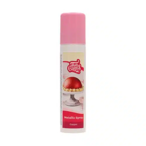 Voorzie je fondant en marsepein taarten, chocolade, crèmes, gum paste, modelleerpaste, koekjes en meer van een prachtige koperen glans met deze lustre spray van FunCakes. De FunCakes metallic spray copper hard compleet uit op de taart, dus je ziet geen vingerafdrukken op de taart als je deze aanraakt.