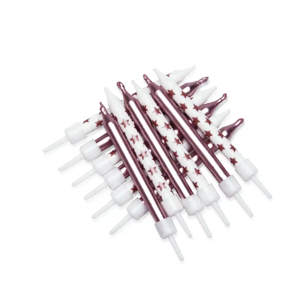 Mooie kaarsjes mix in rose goud met sterren! Inclusief houders.