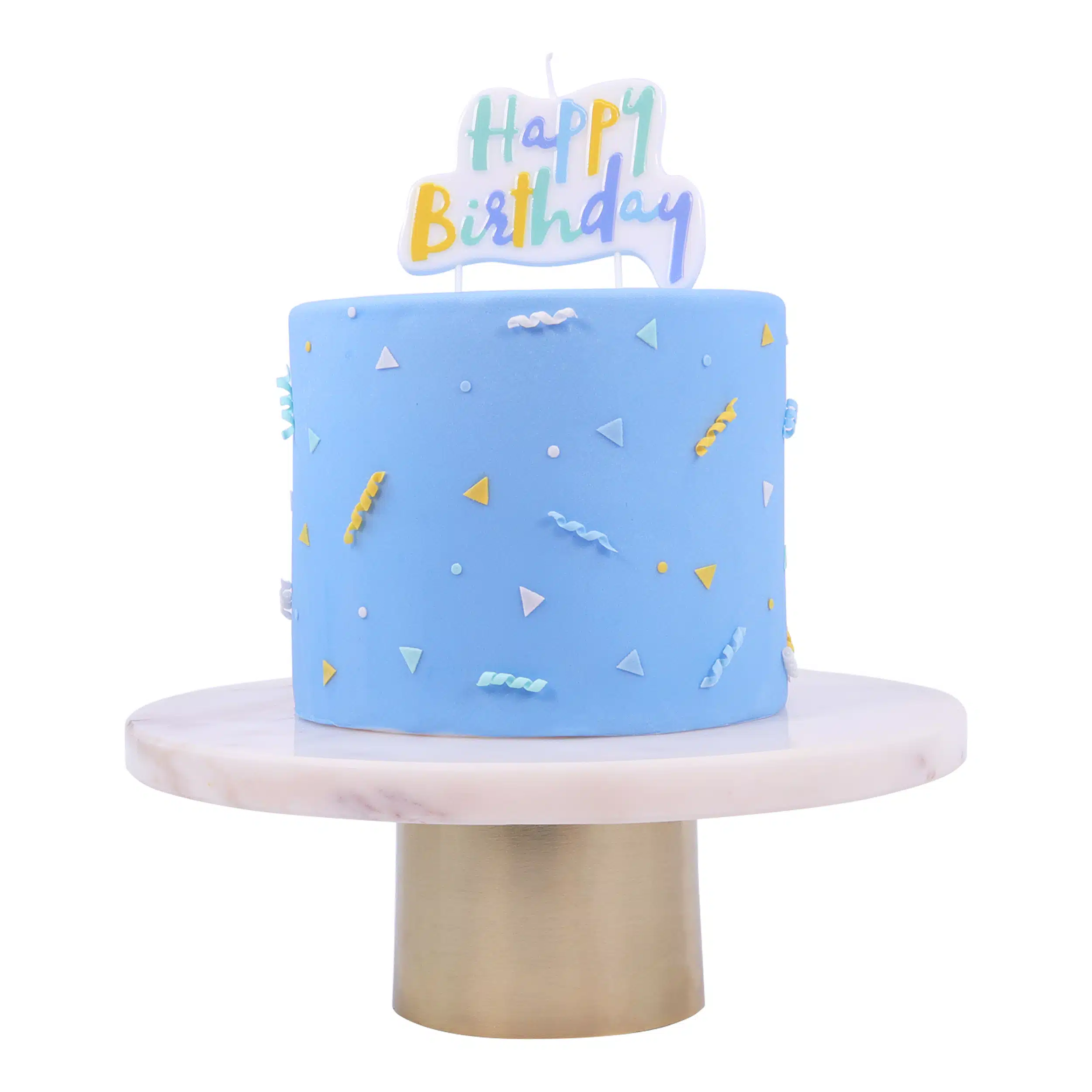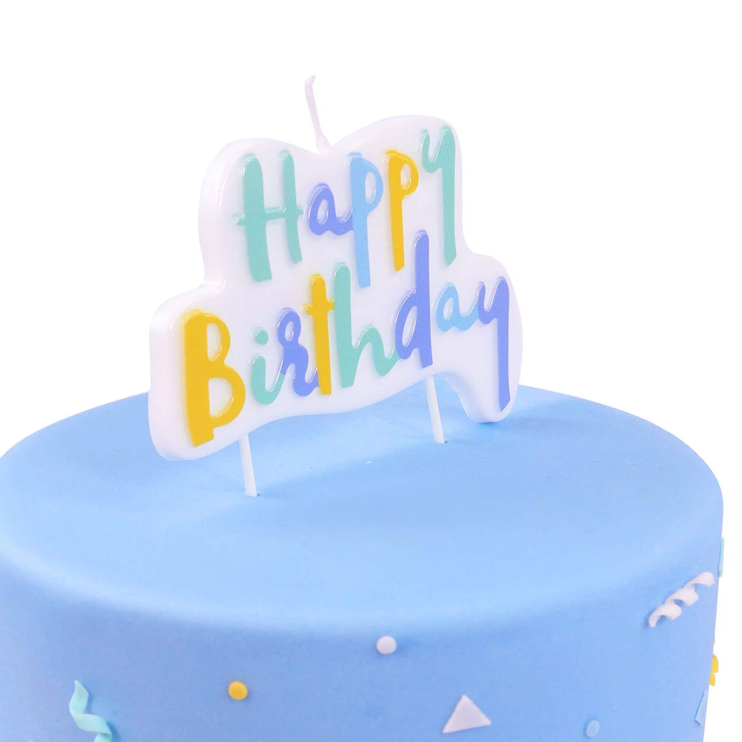Vrolijke Happy Birthday kaars in blauwe pastel kleuren.