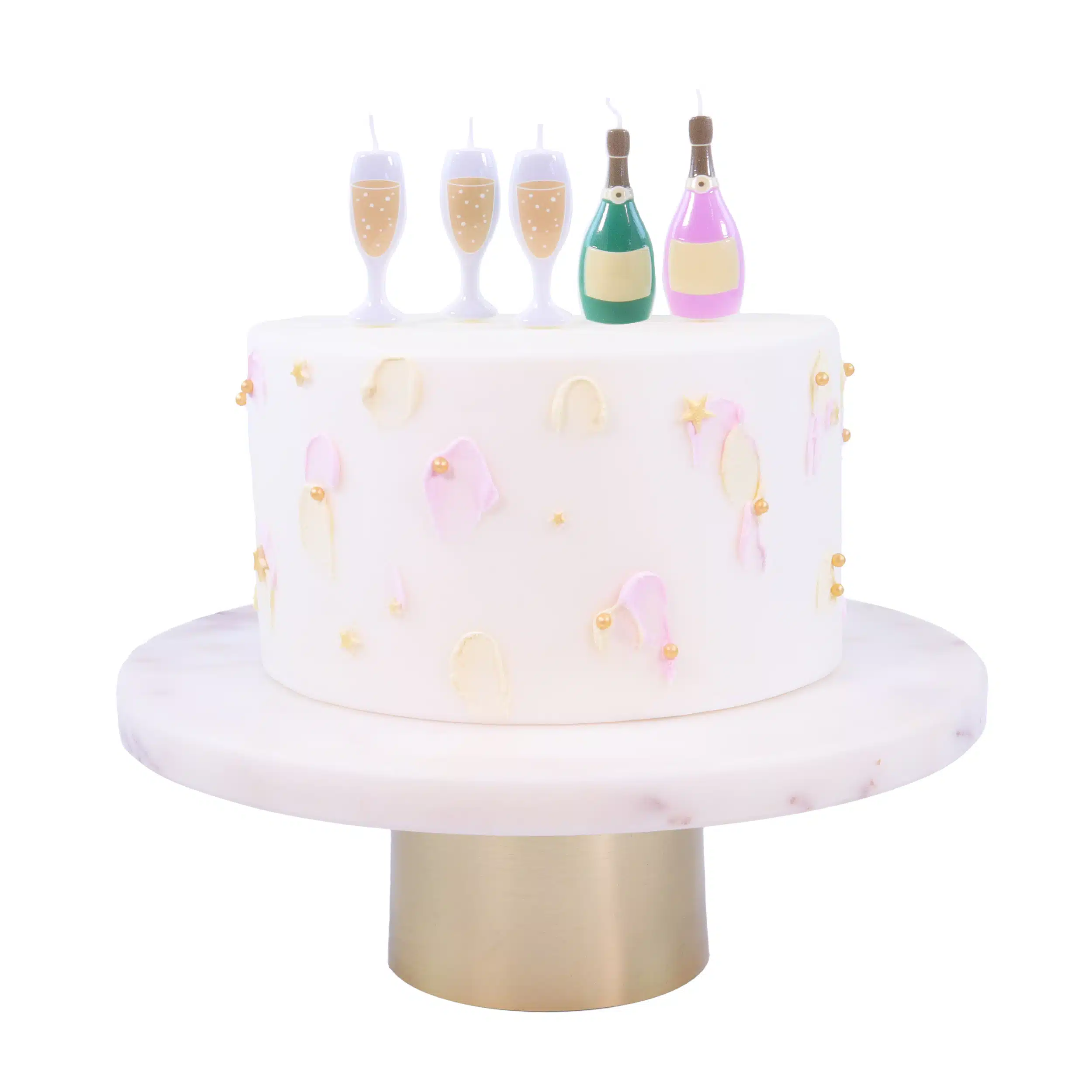 Het pakket bevat 5 kaarsen: 3x glazen flutes, 2x flessen