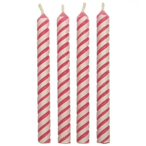 Maak je verjaardagstaart compleet met deze roze gestreepte kaarsen van PME! Afmeting: 5,9 cm. Inhoud: 24 stuks.