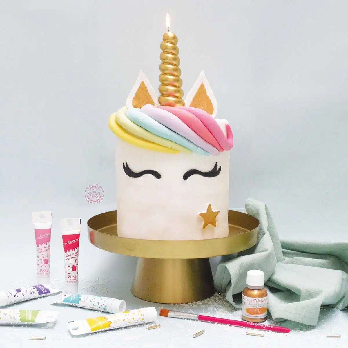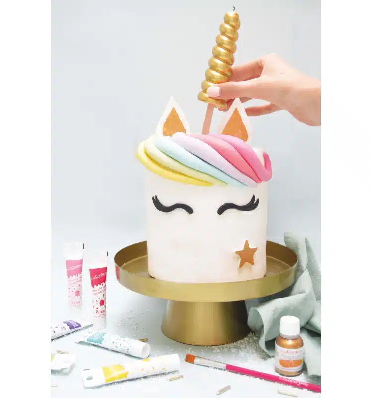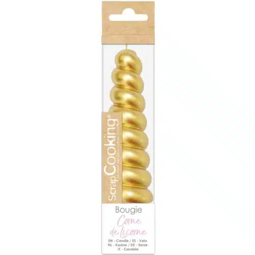 De ScrapCooking Unicorn Horn Candle Gold past perfect op de top van eenhoorntaarten of andere verjaardagstaarten.