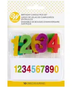 Maak er een kleurrijk feest van met deze leuke verjaardagskaarsjes! Bevat alle cijfers van 0 t/m 9, zodat je ze kunt gebruiken voor elke verjaardag of jubileum.