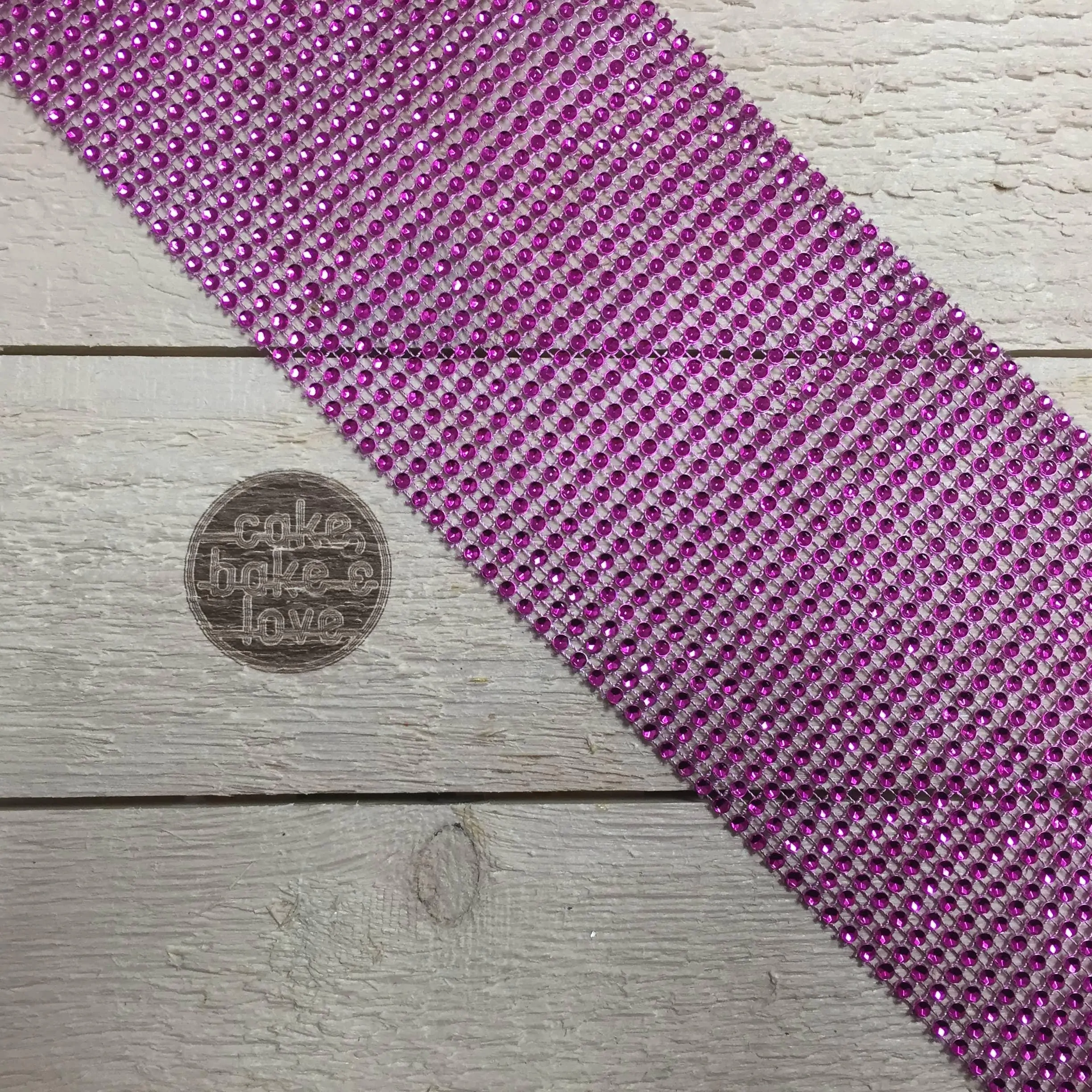 Sierlijk strassband in de kleur fuchsia. Makkelijk op maat te knippen voor om drum of taart ter decoratie (niet eetbaar). Het strassband bestaat uit 24 rijen en is 12 cm hoog. Per meter (dus 24 rijen en 1 meter breed) is het strassband 6 euro. Het is mogelijk meerdere meters te bestellen. Geef dit in de webshop aan door een veelvoud van dit artikel te bestellen. Dus 2 maal dit product is twee meter strassband.