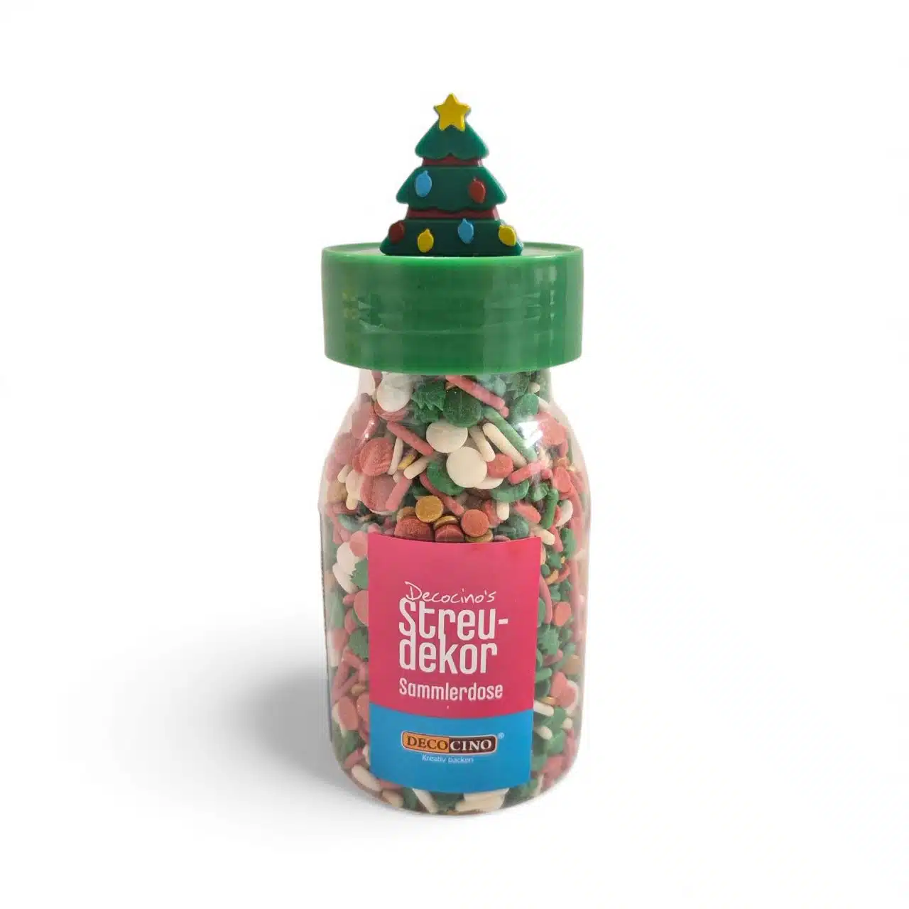 Maak jouw Kerst lekkernijnen nog vrolijker met deze leuke kerst sprinkles. Deze sprinkles worden verpakt in een aantrekkelijk sprinkles potje met een Kerstboom op de deksel. Ook leuk om cadeau te geven!