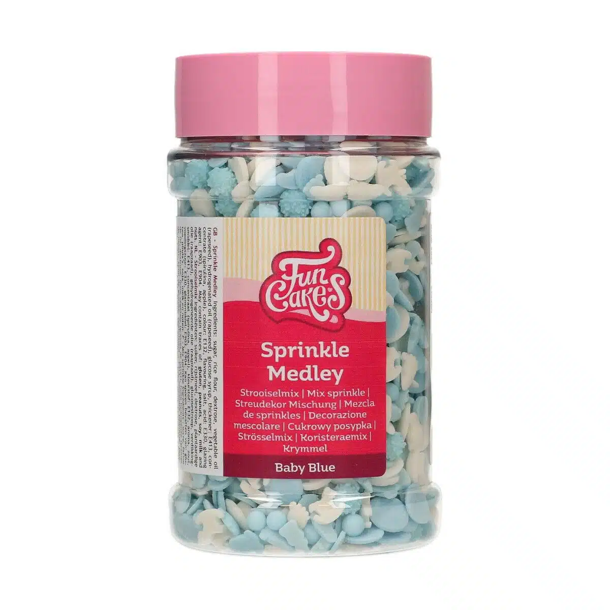 De geboorte van een jongen is altijd een goede reden om prachtig gedecoreerde cupcakes, koekjes of taarten te maken. Deze FunCakes sprinkle medley bestaat uit verschillende blauwe en witte strooisels.