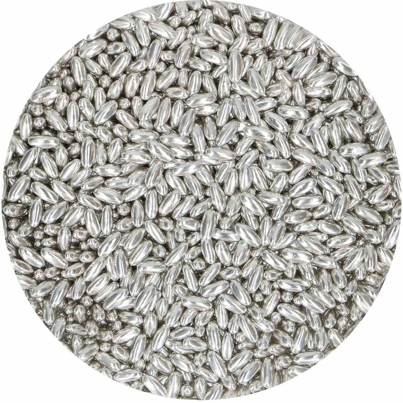 Deze slanke, rijstvormige sprinkles met een spiegelende zilveren glans zijn de perfecte manier om een elegante en verfijnde touch aan je zoete creaties toe te voegen. Of je nu een bruidstaart ontwerpt, desserts decoreert voor een chique gelegenheid, of gewoon een vleugje stijl toevoegt aan je dagelijkse baksels, deze sprinkles maken van elke traktatie een meesterwerk. Dankzij hun veelzijdige en klassieke uitstraling passen ze bij elk kleurenpalet en zijn ze ideaal voor feestdagen, babyshowers en speciale gelegenheden.