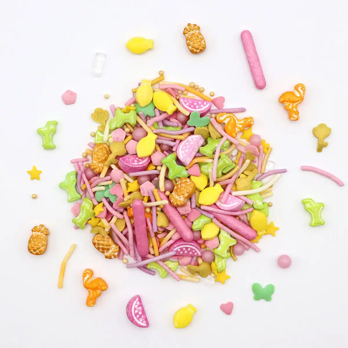 Versier je taarten, cupcakes, donuts en andere lekkernijen met de PME Out of the Box tropische sprinkles. Met de Out of the Box sprinkles van PME maak je je traktaties in slechts enkele minuten vrolijk. Gebruik ze voor een (kinder)verjaardagsfeestje, babyshower een zomers feestje of gewoon voor de lol. Iedereen zal van je traktaties houden!