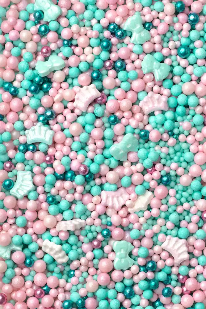 Schattige mix voor al jouw baby taarten en lekkernijen! Deze mix bevat kroontjes, strikjes en parels in de kleuren blauw en roze in verschillende maten.
