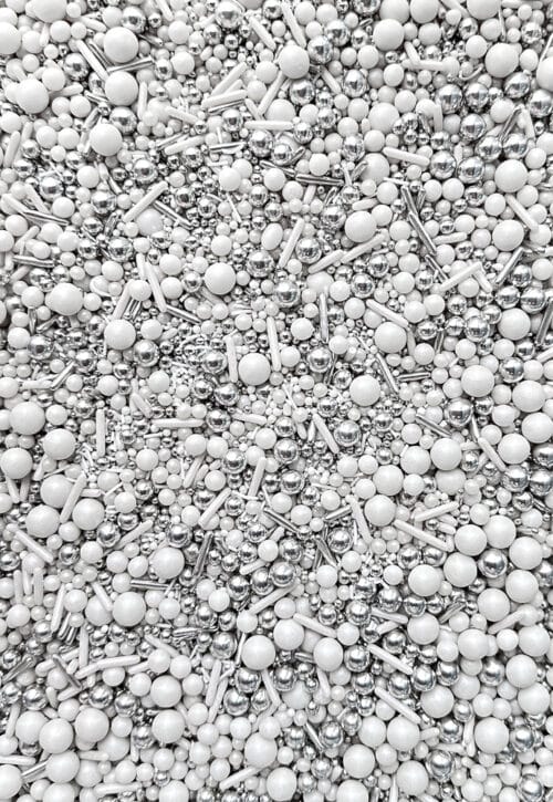 Mooie wit met zilveren mix voor al jouw taarten, cupcakes en andere lekkernijen! Deze mix bevat gouden en witte parels in verschillende maten en witte rods en musketzaad. Een perfecte mix voor een chique Kerstdessert.
