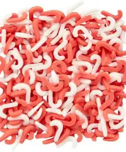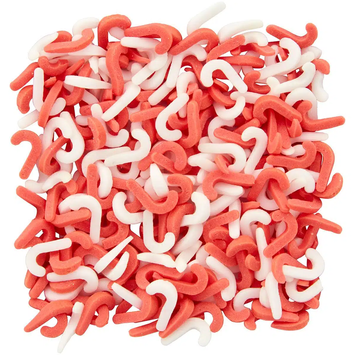 De candy cane mix bestaat uit rode en witte sprinkles in de vorm van candy canes.